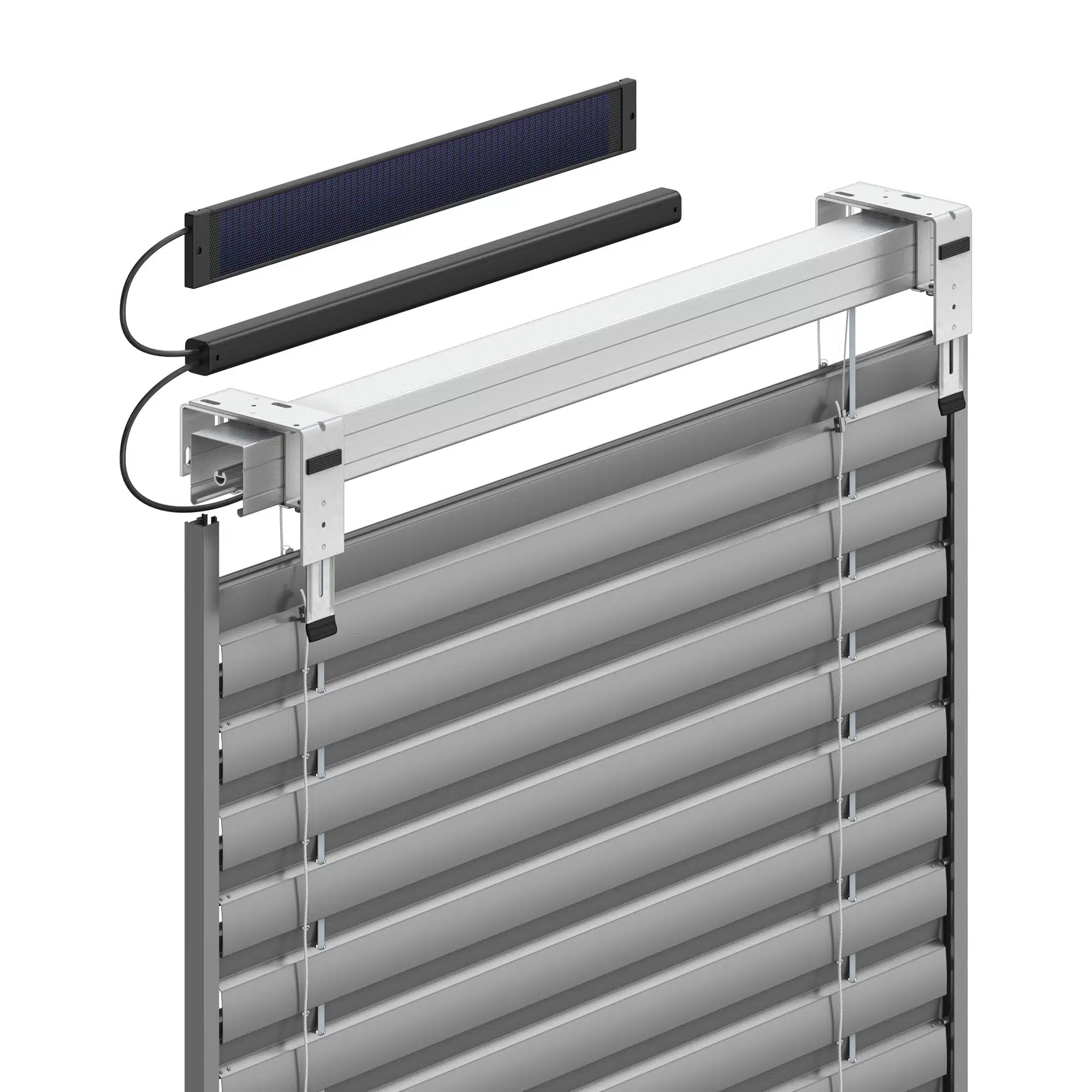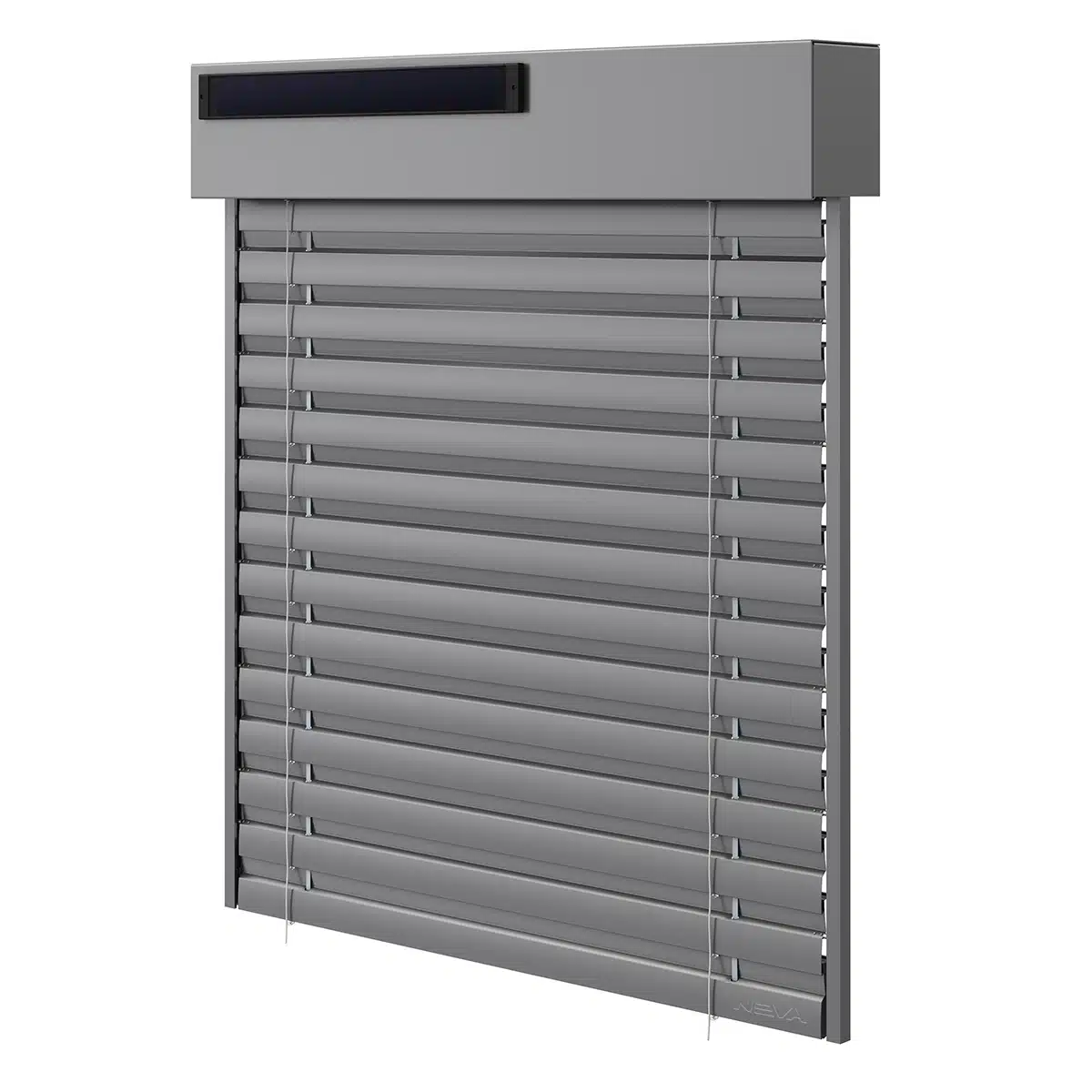 Vonkajšie žalúzie NEVA Solar využívajú solárny panel, ktorý sa dodáva samostatne a zvyčajne sa inštaluje na krycí plech.